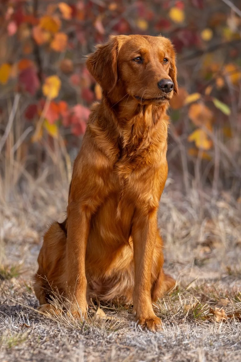 Roxy is a beautiful dark red golden retriever that turns heads wherever she goes. Like Rory she is a descendant of the Yeti line and like Yeti and Rory has a presence and personality that draws people to her. She is intelligent, very trainable with superior marking abilities. She is 62 pounds and though strong and determined in the field she is calm in the house and around other dogs or people. Offspring will be very athletic, tractable field dogs and great companions in the home.